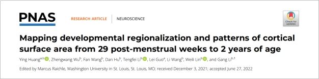 师生(博士生导师:郭雷;博士生:黄影)在国际顶尖杂志《PNAS》(美国国家科学院院刊)发表研究论文“Mapping developmental regionalization and patterns of cortical surface area from 29 post-menstrual weeks to 2 years of age”。《PNAS》自1914年创刊至今已成为全球科研人员不可或缺的科研资料,是被引用次数最多的综合学科文献之一,亦是公认的世界四大名刊之一,在SCI综合科学类排名第三位,具有极高的发表难度。该成果是杰克论坛