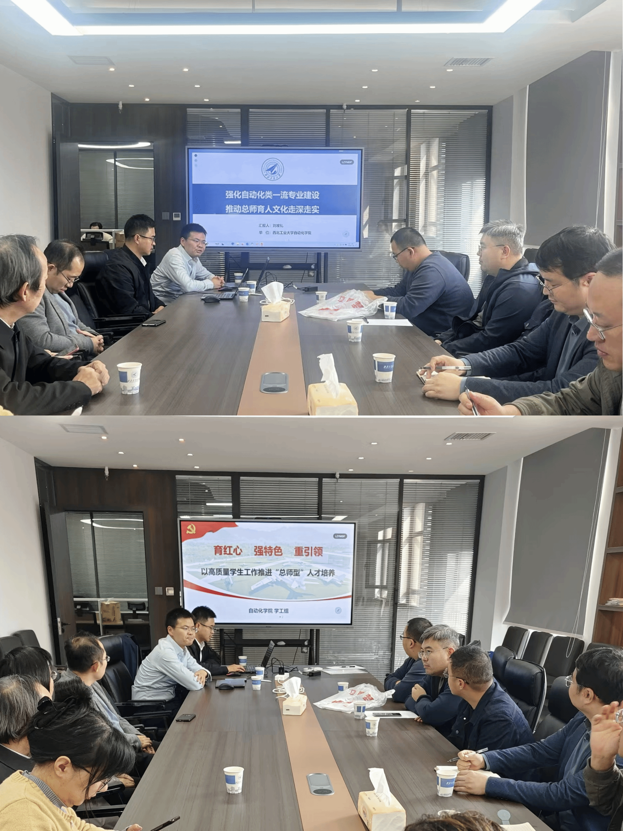 会上,刘准钆首先传达了学校“总师育人文化”引领人才培养的顶层设计及推进情况,然后以《强化自动化类一流专业建设 推进总师育人文化走深走实》为题,介绍了学院坚持以一流专业建设为牵引,持续推进“总师育人文化”引领人才培养的思路和举措。易正阳阐述了学校“总师育人文化”的特质内涵及培养路径,然后从“育红心”“强特色”“重引领”三个维度展开,重点围绕学风建设、创新创业、社会实践、思政育人四个方面内容,系统讲述了学院以高质量学生工作推进“总师型”人才培养的系列举措。