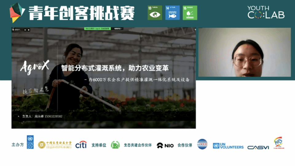 第五届“青年创客挑战赛”以“绿色发展”为主题,鼓励青年充分利用科技、数字技能,以绿色、包容和可持续的解决方案应对气候和生物多样性带来的挑战。11月4日至6日,比赛以线上开展的方式在北京举行。会上,联合国开发计划署驻华副代表乔展(James George)、中国宋庆龄青少年科技文化交流中心副主任张瑞革、中国生态环境部自然生态保护司二级巡视员、《生物多样性公约》缔约方大会第十五次会议(COP 15)谈判代表刘宁、花旗银行(中国)有限公司副行长滕红军等分别致辞为青年创业者送上鼓励和祝福。