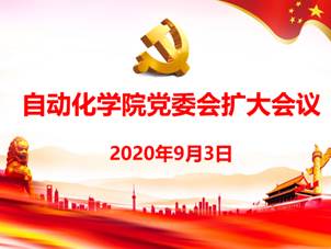 党委于2020年9月3日召开党委会扩大会安排部署本学期党委重点工作。院党委书记潘泉,院长黄攀峰,党委副书记李伟林、马玥,党委委员李爱军、王长青、智永锋,参加此次会议,副院长刘准钆、王小旭,各系支部书记等受邀列席了本次会议。本次会议由党委书记潘泉教授主持。
