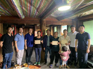 次日,经过多方努力,与正在遭受泥石流灾害的融水县安太乡甲报村党支部取得联系,一行人前往甲报村贫困家庭进行走访慰问,并向那里的孩子送去助学金。甲报村是“十三五”贫困村,共369户1551人,面积约150平方公里,共分10个自然屯,每个屯相隔数十公里。从融水前往甲报村,需要经过两个半小时的山路路程,途中,由于泥石流滑坡导致的道路拥挤,一行人步行穿过清障区,与甲报村贫困村民会面并亲切交流,并深入部分贫困家庭送上西工大温暖。