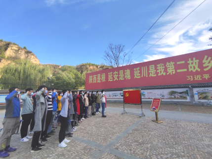 党委副书记马玥老师带领下,学院组织学生党员干部赴延安开展“走初心之路,点亮红色中国”学生红色现场教学暨学生党员干部培训活动,充分了解习近平总书记在梁家河下乡时期的奋斗故事及党中央驻延安时期的历史。
