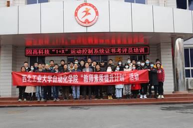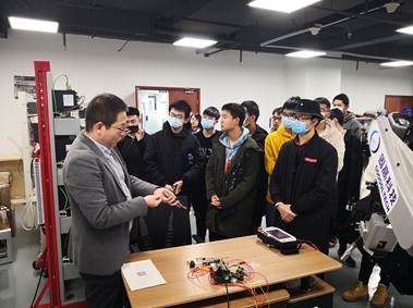 师生在固高科技公司西安分公司王欢总经理的带领下,先后参观了分公司文化长廊、研发部、实验室等部门以及固高科技“1+X”运动控制系统技能培训基地。王欢总经理详细介绍了固高成立十余年来在运动控制等领域所取得的丰硕成绩以及在人才培养、企业孵化方面的创新模式。固高工程师详细介绍了固高科技“1+X”运动控制系统培训平台硬件的各部分功能,并进行演示。