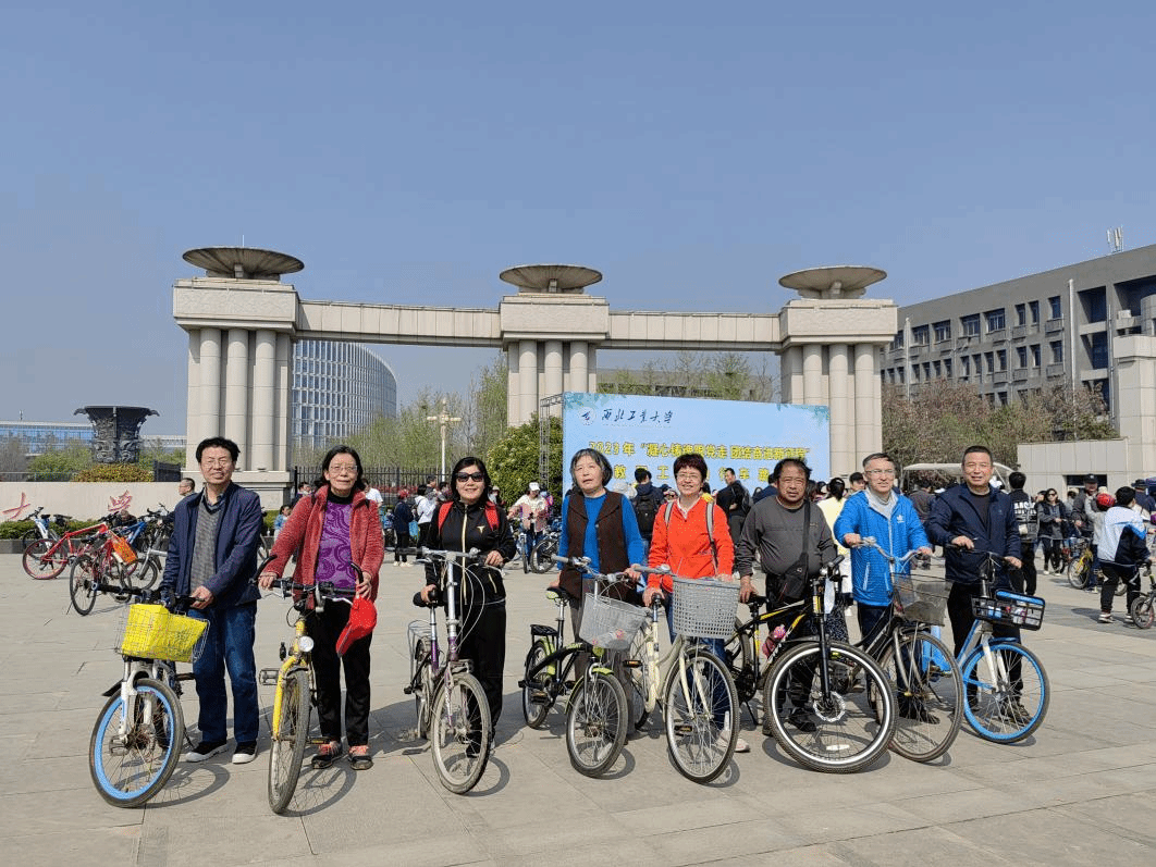 上午7点,教职工们按照提前安排的路线分别从友谊校区、长安校区出发。在春意暖阳照拂下,伴着徐徐微风,大家兴致盎然,一路欣赏着沿途美景,感受春天的生机与魅力,在轻松而愉悦的气氛中向着终点前进。经过30多公里的骑行,大家陆续到达了终点,并在校门口合影留念。