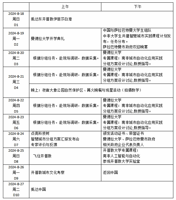 五、项目日程: 2024年8月18日 — 2024年8月27日