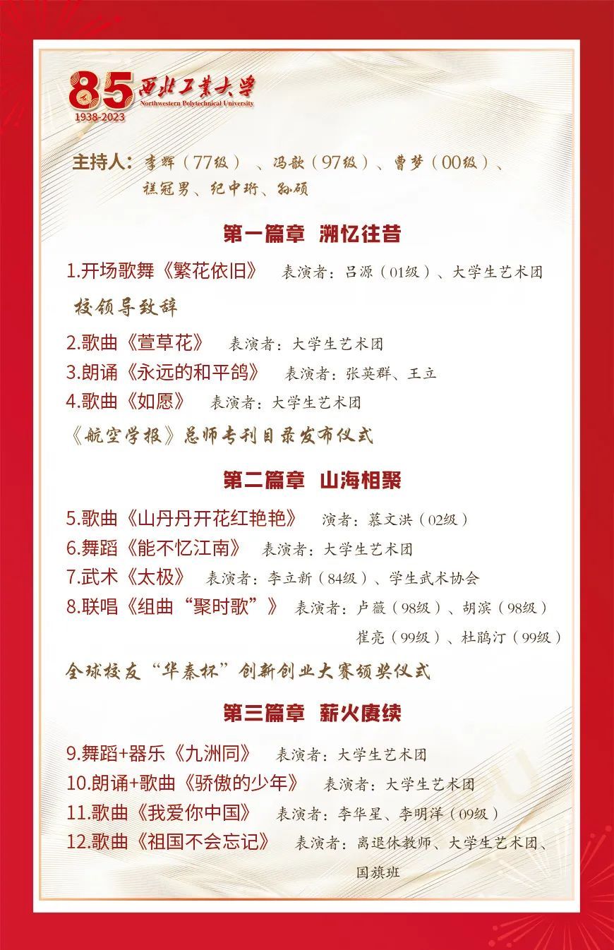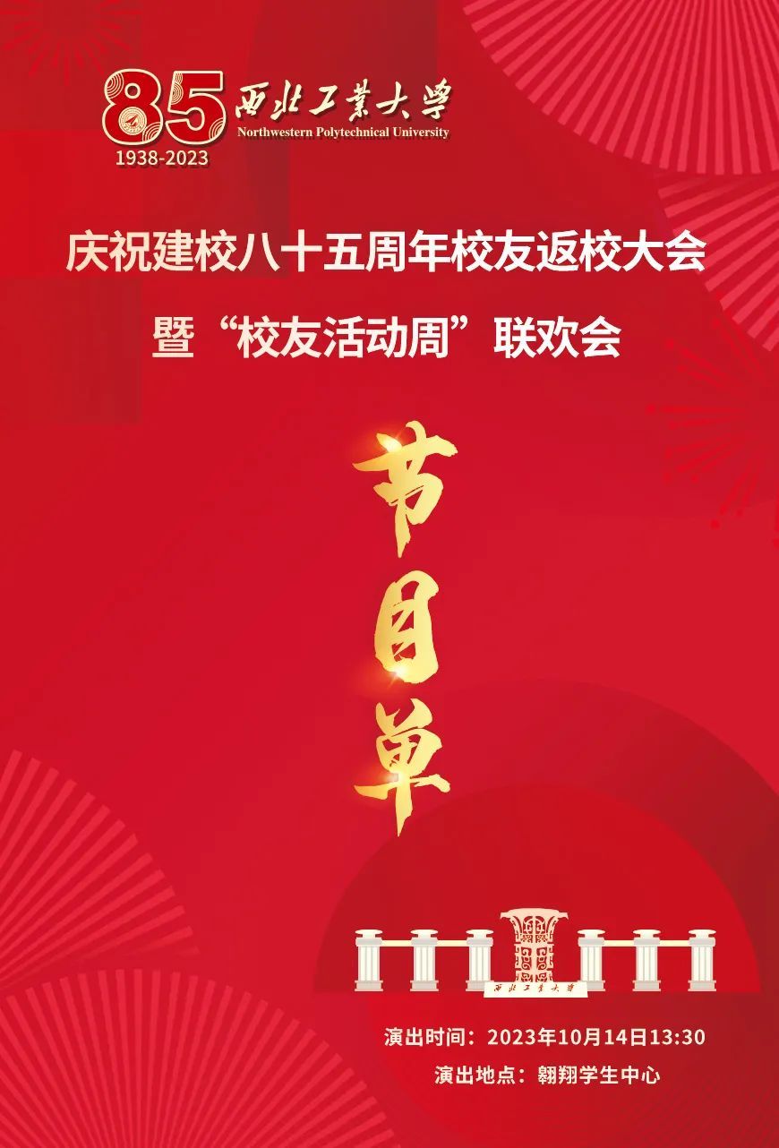 庆祝建校85周年校友返校大会暨“校友活动周”联欢会将于 2023年10月14日13:30在长安校区翱翔学生中心举办诚邀广大返校校友共享视听盛宴。