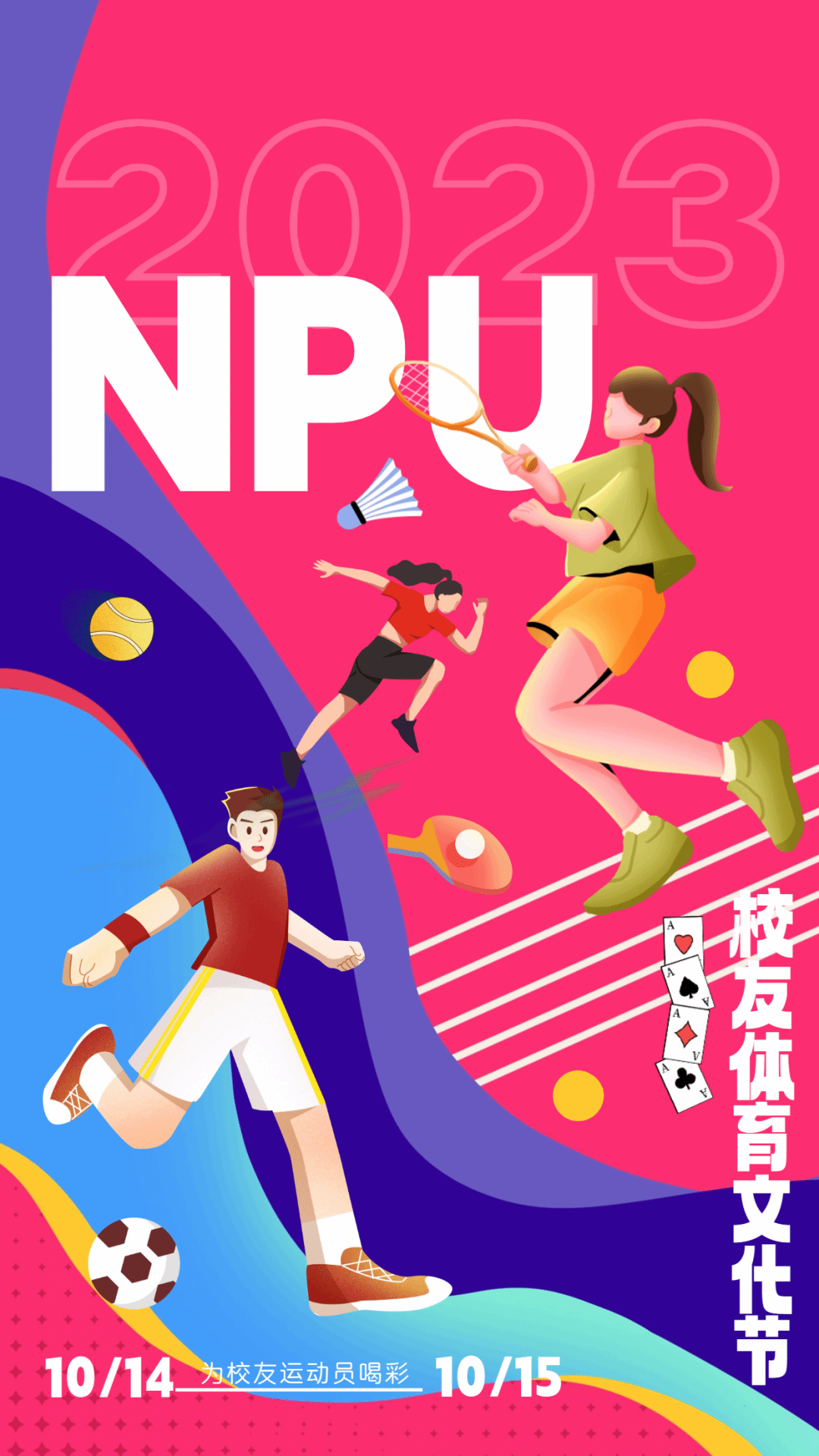 本次校友体育文化节共包括6项校友体育赛事活动,分别为:校园欢乐跑、网球、羽毛球、足球、乒乓球、扑克。