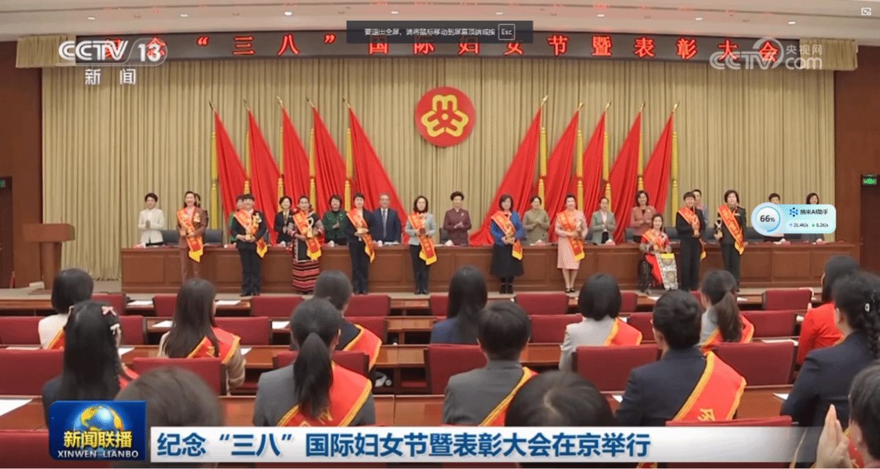 2月28日,全国妇联在京举行纪念“三八”国际妇女节暨表彰大会。国务委员、全国妇联主席谌贻琴出席大会并讲话。全国妇联党组书记、副主席、书记处第一书记黄晓薇主持会议。大会表彰了10名全国三八红旗手标兵、596名全国三八红旗手、395个全国三八红旗集体、599个全国巾帼文明岗。其中,杰克论坛 院友张润红获评“2024年度全国三八红旗手”。
