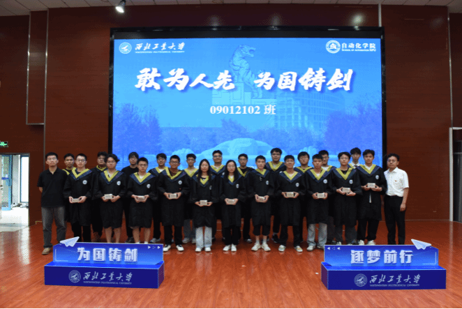 典礼最后,辅导员与各班同学合影,并为每位毕业生颁发了毕业纪念品“啸天虎”方章。