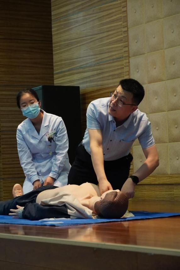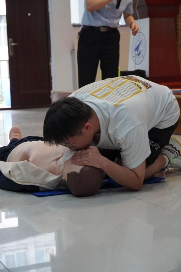 何凯亮为师生做急救知识与技能培训。他就心肺复苏术、AED的使用、常见急症的处理三方面进行了详细讲解。在讲座过程中,何凯亮现场开展急救技能实践培训,让同学们分为3组轮流学习心肺复苏术、AED的使用、海姆立克法等急救常识。通过何院长的生动讲课和现场热情互动,同学们不仅了解了应急救护的相关知识,初步掌握了自救互救的技能,还更加深入地认识到生命安全的重要性。