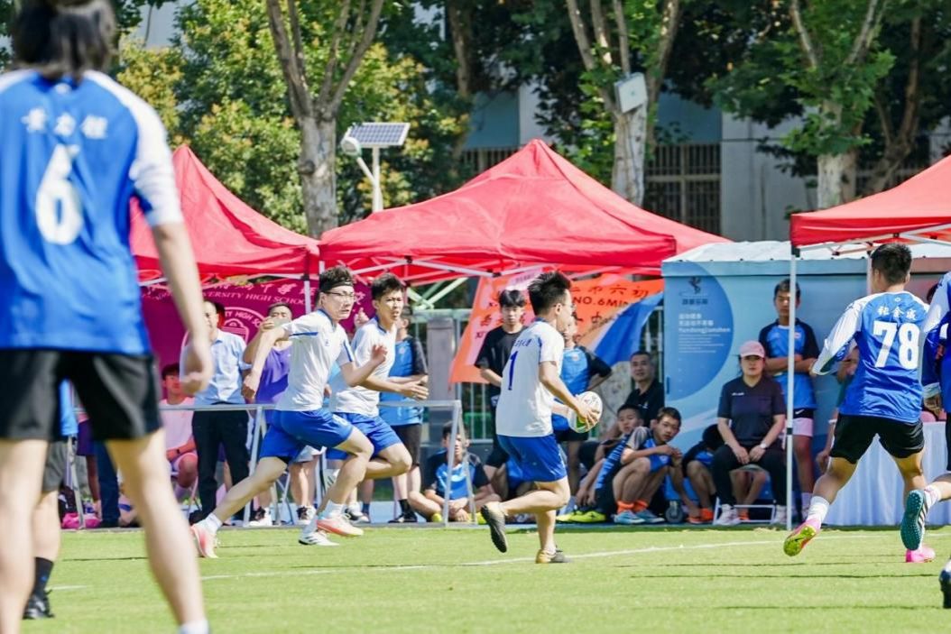 橄榄球队重新启动训练的日程,巩固基本功,打磨技术,提升团队配合能力,并最终在6月23日陕西省首届英式橄榄球(触式)邀请赛中斩获冠军!