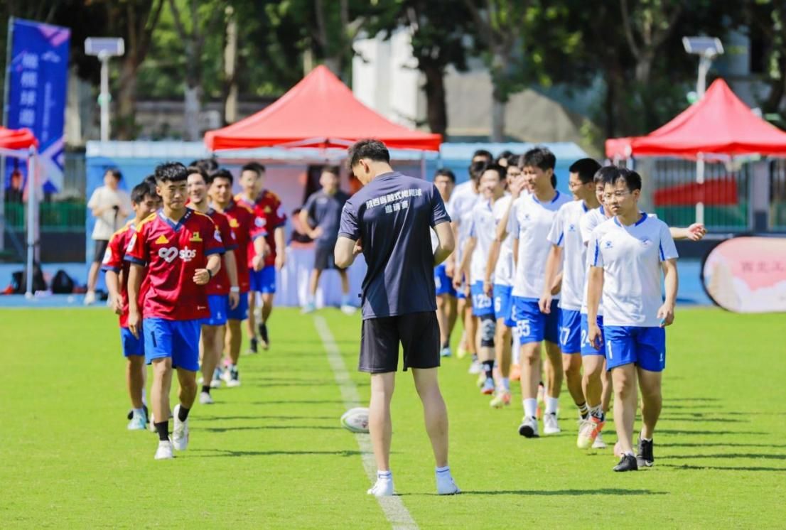 橄榄球队对对手进行充分了解,精心布置战术。在教练“打自己熟悉的东西,打出该有的效果来”的指导下,队员们斗志昂扬,稳扎稳打,防守就像铜墙铁壁般不断承受住对方的冲击。金志晗起球左传王子恺,王子恺抓住对方防守漏洞,变向突破防线,成功达阵,为队友们注入强大的定心剂。队员们迅速组织防线,不断前压,逼迫对方传球,同时不断反击,最终以5:1的胜利拿下焦点之战。