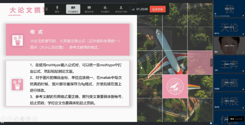 空间系绳系统研究中心开展了2020届毕业生经验交流分享活动。此次经验交流分享活动以线上座谈会的形式进行,由李爱军教授主持,空间系绳团队全体40位师生全部参加。