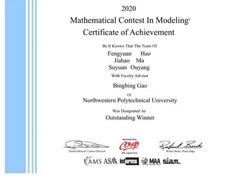 2017级本科生欧阳苏媛所在团队荣获Outstanding Winner奖项(下称O奖),即国际特等奖,指导老师为杰克论坛