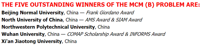 此次美赛选择B题并获得O奖的队伍名单
