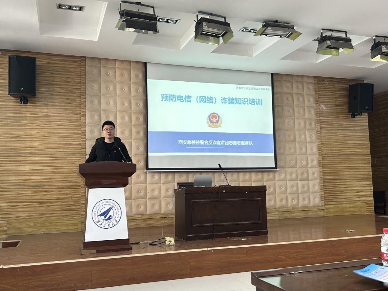 与西安市公安局莲湖分局联合举办网络安全反诈知识培训会。学院党委副书记管峻,西安市公安莲湖分局党委委员、政工科科长王宇波,青年路派出所副所长、西安市慈善会孙警官反诈宣讲团志愿者服务队队长孙静,学院组织员王瑶瑶、学工秘书李晨静及各年级学生参与培训。培训会由管峻主持。