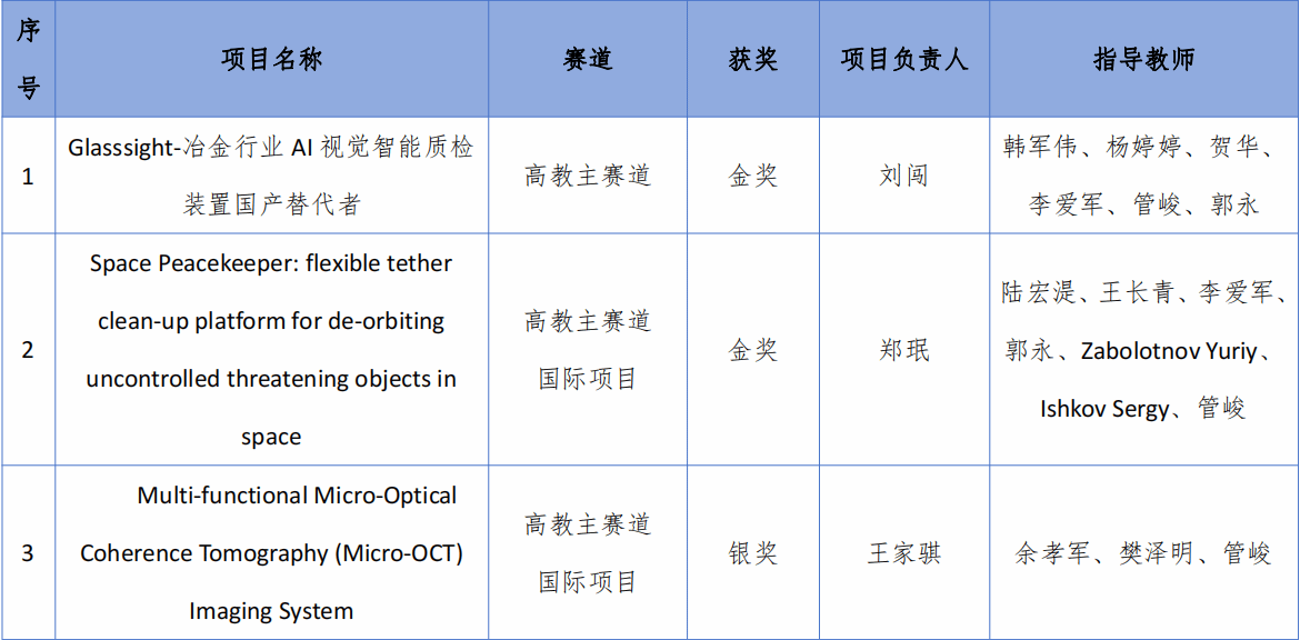 共有3支队伍入围总决赛,获得“高教主赛道”金奖1项,“高教主赛道—国际项目”金奖1项、银奖1项。