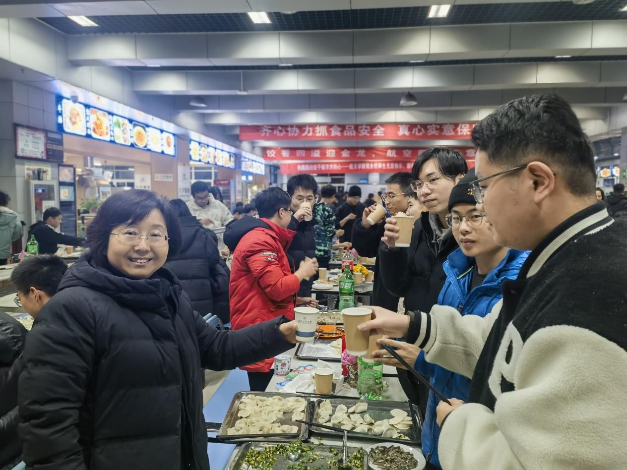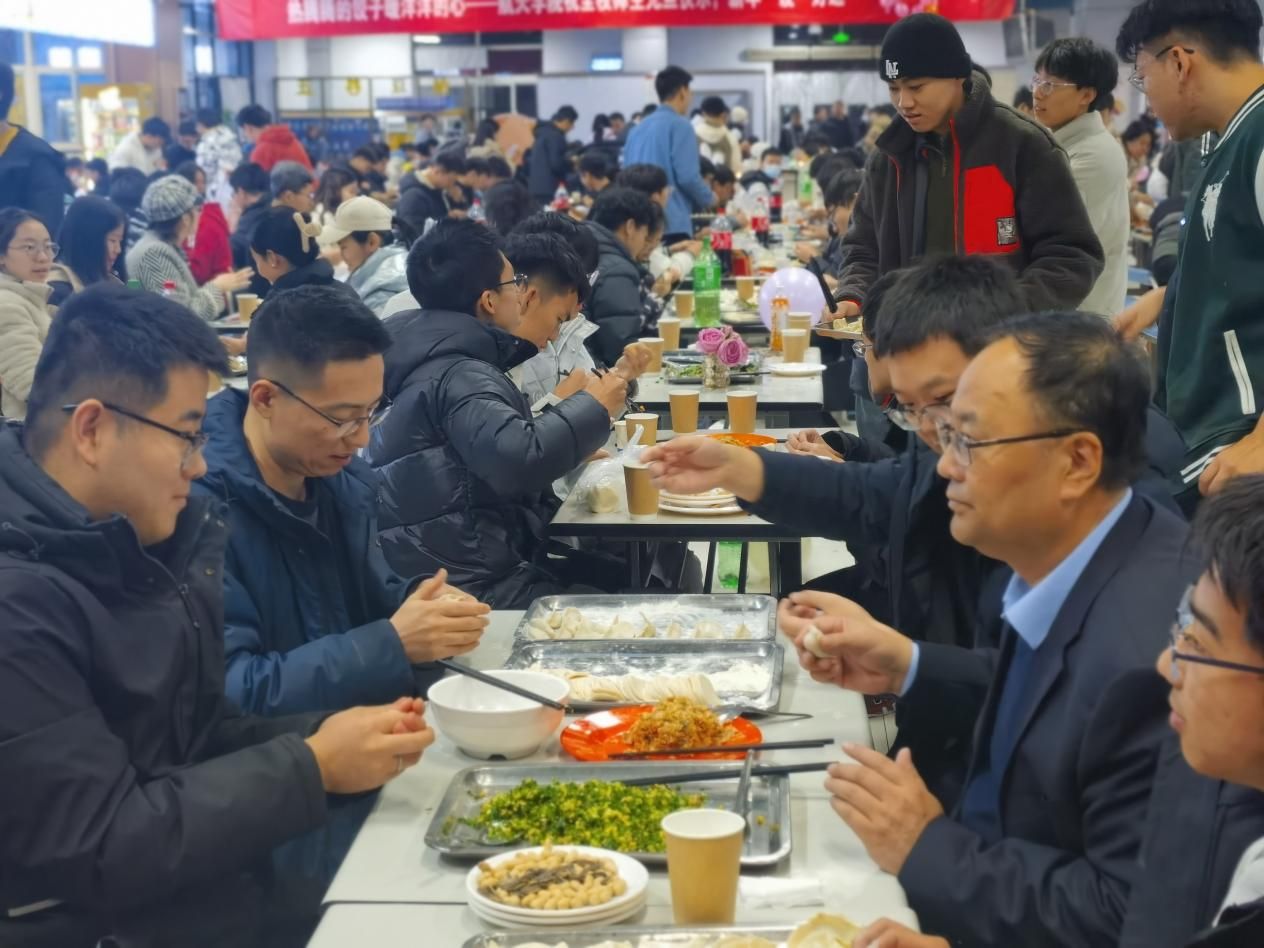 于元旦当天在云天苑餐厅成功举行师生包饺子活动,学院党委副书记(主持工作)李伟林,党委副书记管峻、团委书记张作伟和学院各年级60余名同学参与了此次活动。大家抻面皮,取饺子馅儿,一握一捏。不一会儿,一个个各具特色的饺子就摆满了托盘。当一盘盘饱含着大家劳动成果的饺子热气腾腾地端上桌,那浓浓的饺子香气使同学们忘却了冬日的寒冷,食堂中到处是欢声笑语。