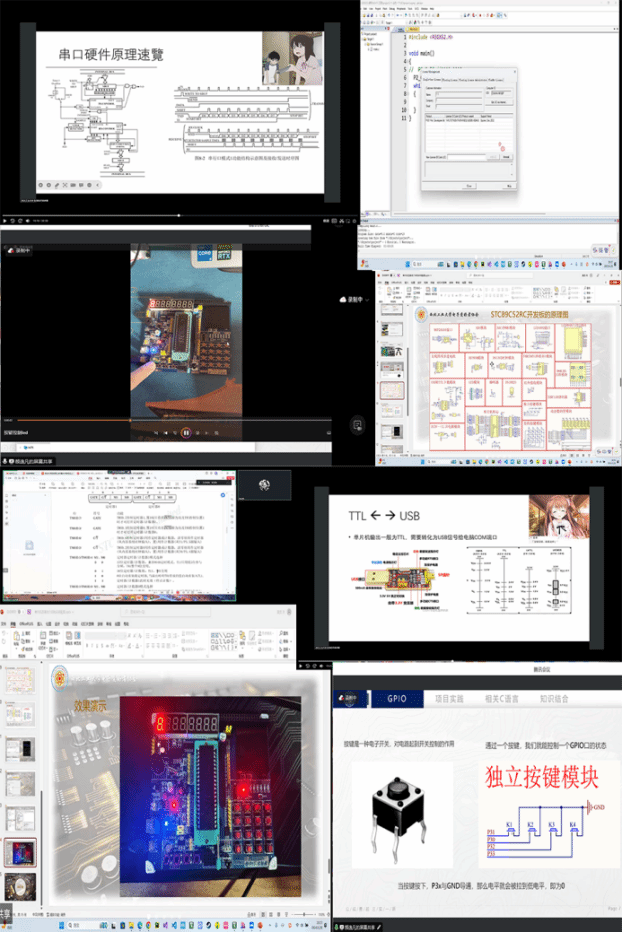 从1月28日至2月2日,“奋斗青春、共心筑梦”实践队开展了为期六天的单片机线上课程。电子爱好者协会的授课同学们凭借丰富的经验,精心备课,以满腔热情传递着知识的火炬。课程内容从单片机的基本概念到相关软件的使用,从理论体系到实物演示,再到单片机原理的深入剖析和简单操作的具体实现过程,都进行了详尽而系统的讲解。课程内容通过丰富多样的实例,将复杂的概念变得生动易懂,让大一的同学们轻松地步入了单片机的世界。在直播间里,同学们积极互动,热情参与,共同探讨学习中的问题,形成了浓厚的学习氛围,实践活动取得圆满成功。