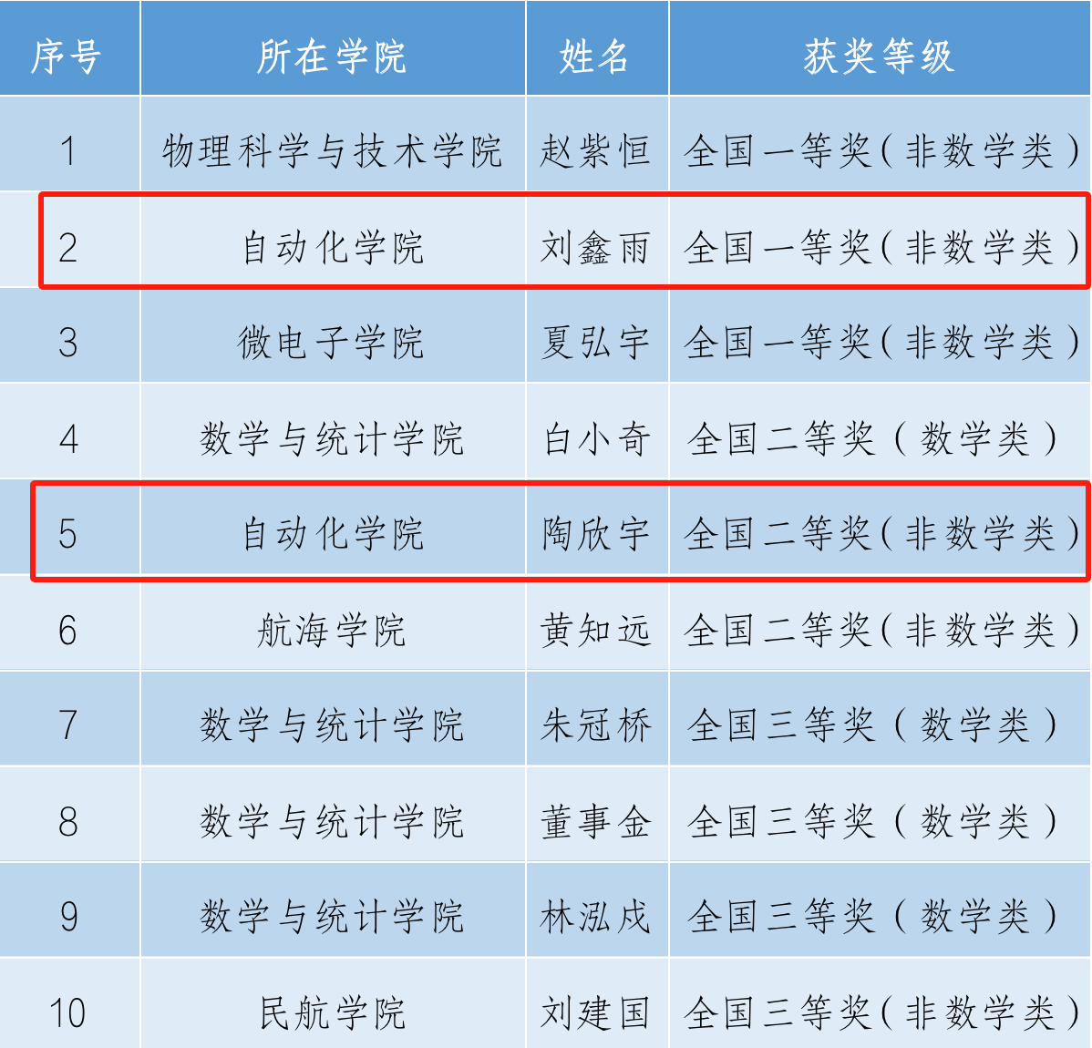 10名同学进入决赛,并全部获奖,共获得全国一等奖3项,全国二等奖3项,全国三等奖4项,获奖数量再创新高。