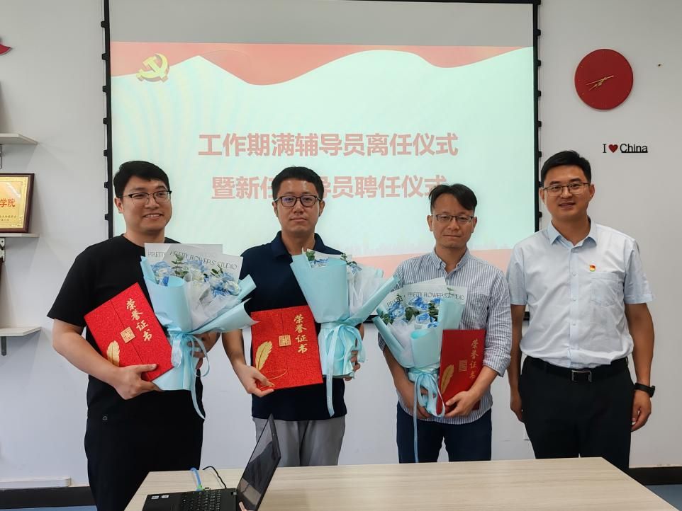 两位新任辅导员李相科和梁小辉表示自己深受鼓舞,同时感谢学院的培养和信任,接过上一任辅导员的接力棒,必将坚定信心、凝心聚力、铆足干劲,助力学生工作再上新台阶。