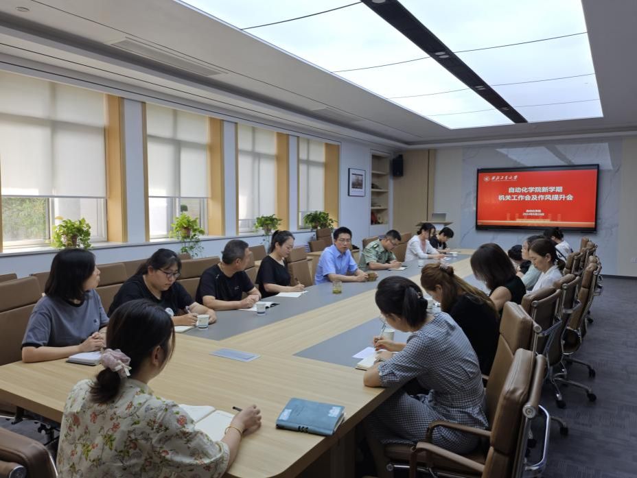 召开2024年秋季新学期机关作风提升暨工作布置会。学院党委书记李伟林、副书记易正阳,办公室主任魏爱玉以及学院办公室全体人员参会。