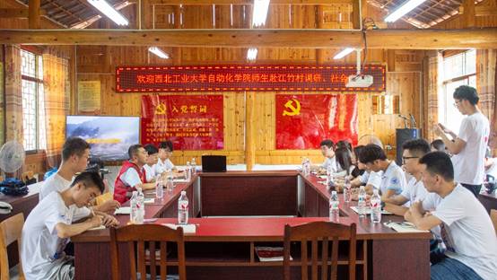 挂职村党组织第一书记方原与实践队就江竹村的科技扶贫相关工作开展座谈会。