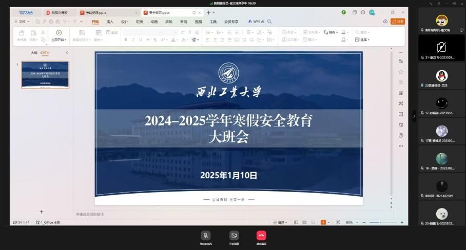 寒假安全教育采用线上线下相结合的方式,以召开大班会的形式展开。各年级辅导员结合学生实际情况和真实案例,针对交通安全、出游安全、消防安全、预防诈骗等方面展开,特别强调了宿舍用电规范,包括正确使用电器、避免私拉乱接电线等,并反复提醒同学们离校前务必关好门窗、切断电源,确保不留一丝安全隐患。