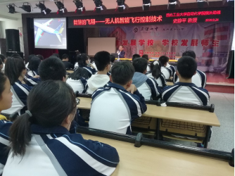 优质生源基地中学甘肃省兰炼一中(兰州市第五十八中学)开展招生宣讲和科普讲座活动。史静平副教授在学校六楼多功能教室为高二年级全体同学作题为《智慧的飞翔----无人机智能飞行控制技术》的科普讲座报告。