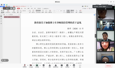 2020年10月20日下午14:00,电气工程系12位博士生导师通过腾讯会议(会议号:550786044)对《教育部关于加强博士生导师岗位管理的若干意见》进行了深入的学习研讨,与会老师提出意见和建议。