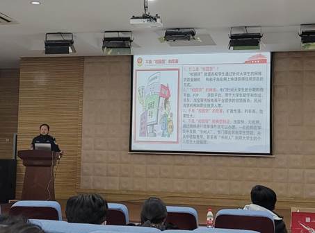 副书记马玥和校公安处副处长姜文军等相关领导参加了讲座。讲座主要内容为与广大师生交流防骗知识与防骗案例,吕欣警长从接警案例和校园贷两大方面进行了讲解。