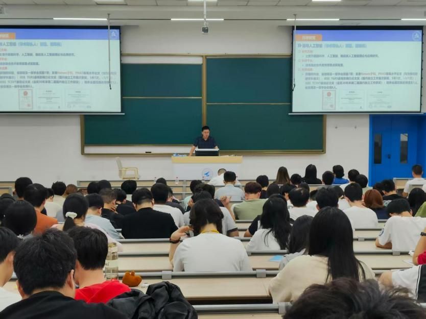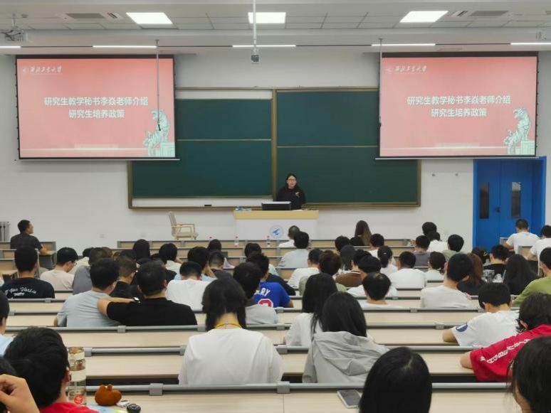邓飞围绕校史及学院发展历程,为同学们介绍了学院的人才培养体系、专业设置情况、教师队伍组成和国际合作概况等。他希望同学们能够尽快适应研究生生活,努力学习,在大学这一全新平台茁壮成长,努力成长为“专业精、系统强、重实践、能担当”的“总师型”人才。