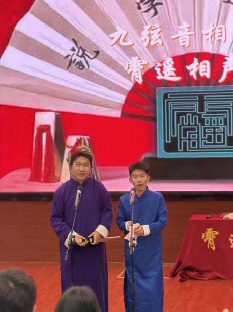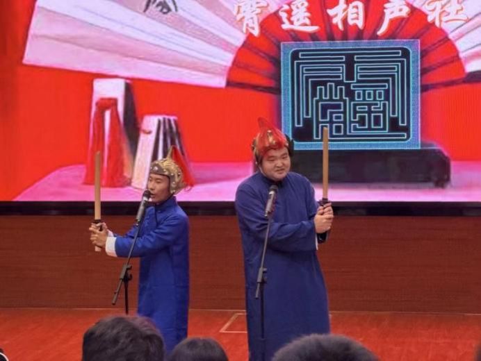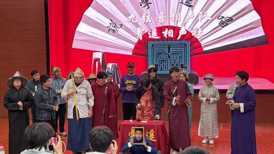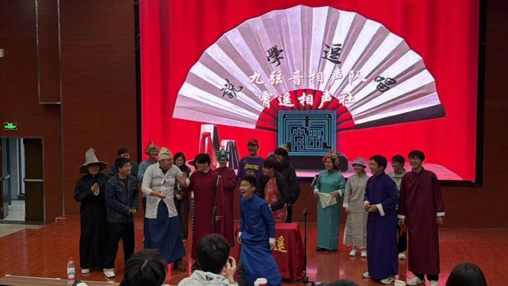 学生九弦音艺术团霄遥相声队在教学西楼D100教室顺利开展“喜长新”相声大会,本次活动也是霄遥相声队第四次专场演出。历经数周的精心准备,队员们以最佳状态登台。一段段诙谐幽默的相声,一句句引人捧腹的台词,不仅烘托出欢乐氛围,更让传统曲艺的韵味在观众间悄然传递。