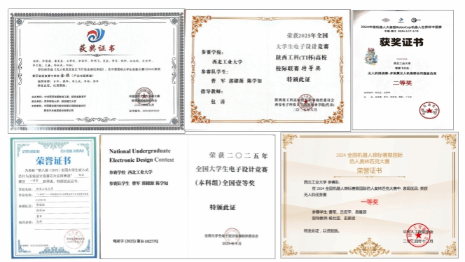 不止于电赛,他的竞赛收获远未停歇:全国机器人锦标赛暨国际仿人奥林匹克大赛摘得国家一等奖,全国大学生嵌入式芯片与系统设计竞赛获省级一等奖,“中国国际大学生创新大赛”获得省级金奖……10项涵盖数模、电子、机器人、嵌入式领域的省部级以上奖项,见证了他从“参赛萌新”到“竞赛达人”的蜕变。