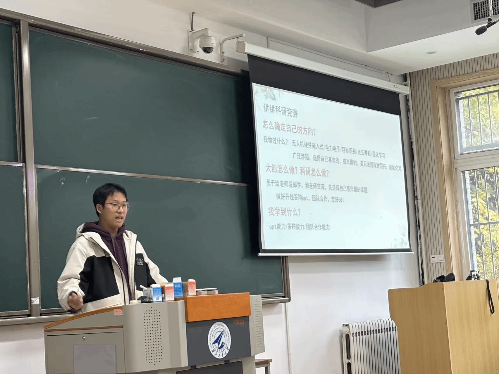 付宇航多次获得机器人国赛奖项,他在经验分享中鼓励同学们主动尝试智能无人系统、工训等基地,即使未通过考核,准备过程本身就是一次自我突破的成长。并且,他提倡明确方向与规划,寻找志同道合的伙伴相互支持,通过合作项目实现共同进步。付宇航希望同学们能在迷茫中积极调整心态,以持续进步为目标,不断优化学习与生活节奏。