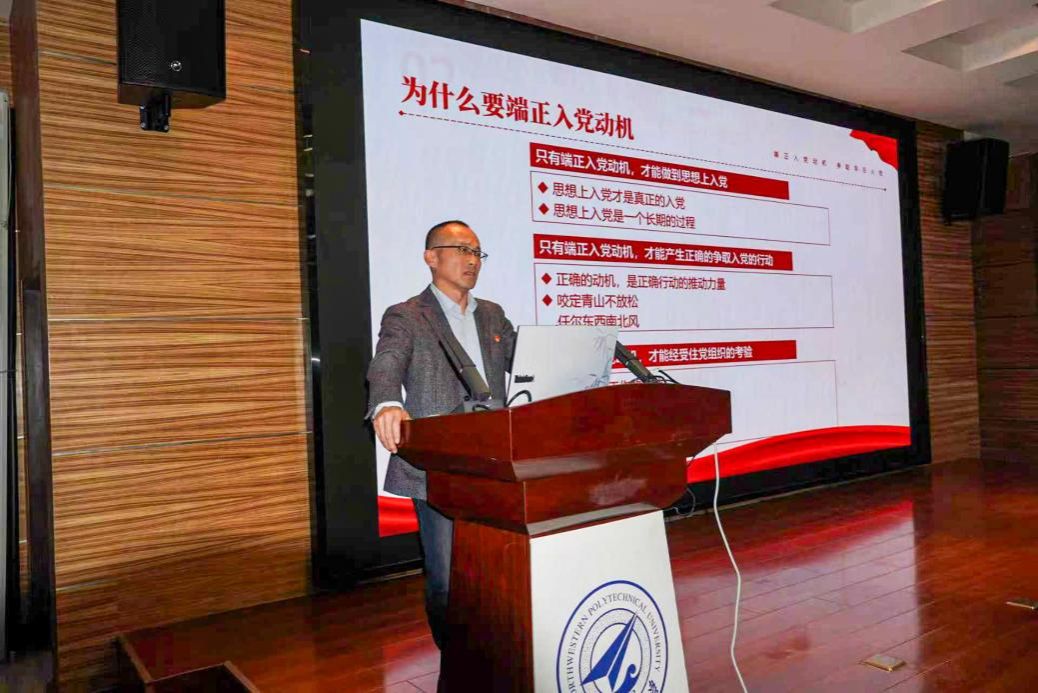 孙华强强调,高校党员选拔事关党的建设根基,端正入党动机是开启大学征程的重要课题,而严格标准、规范程序正是淬炼纯粹初心的“试金石”。他说,入党材料的真实表达、规范格式与严谨态度,绝非形式要求,而是对入党信念的郑重承诺,是端正入党动机的“起点实践”,更要以诚恳态度主动接受党组织的考察,在考察中检验初心、锤炼品格。他寄语学生,要从入学之初就筑牢思想根基,主动深学细悟党的创新理论,深刻领会其时代内涵与实践伟力,将个人成长与国家发展紧密相连;在日常学习中勤学好问、深耕专业,在集体生活中团结同学、主动担当,在科创活动中大胆探索、勇于突破,以实际行动发挥先锋模范作用,在党组织的悉心培养与严格考察中稳步成长,让大学生活在追光逐梦、勇担使命中收获充实与成长。