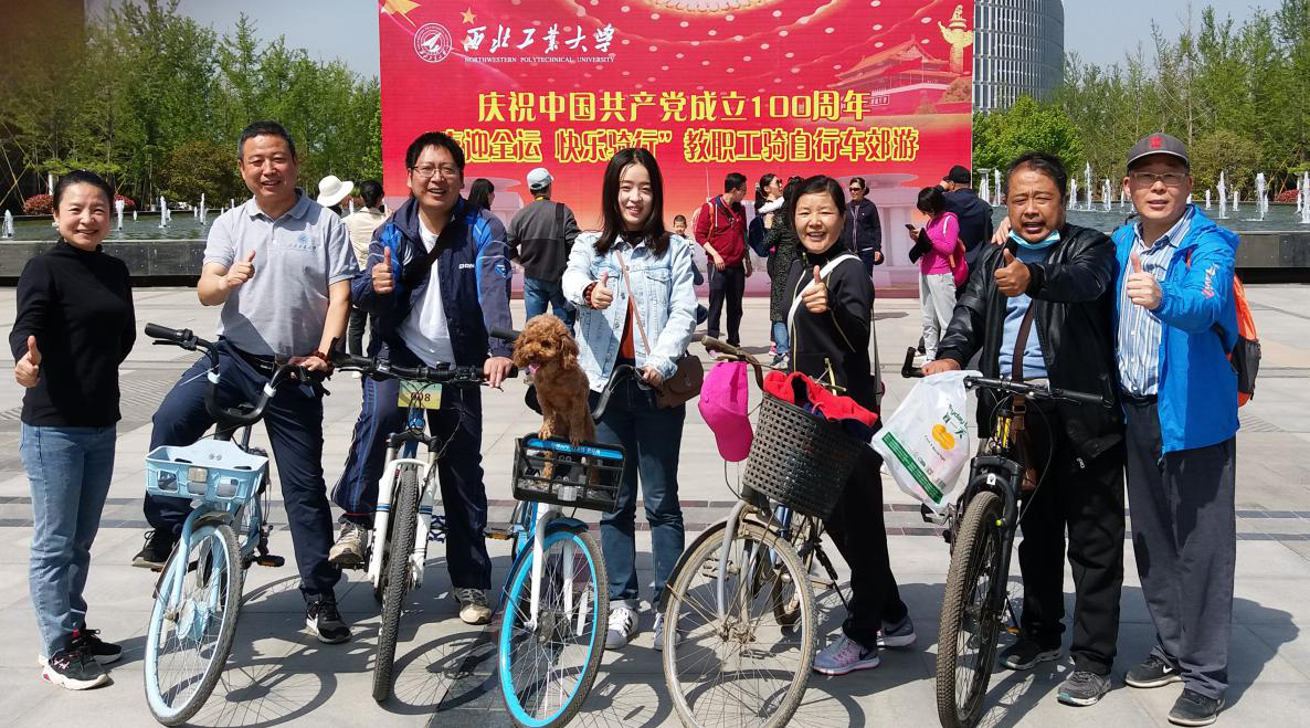部门工会的组织下,学院教职工参加庆祝中国共产党成立100周年骑自行车郊游活动。