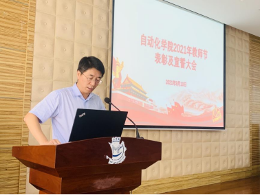 于9月10日上午10:00点在学院多功能报告厅举行了2021年教师节表彰及宣誓大会。学院领导班子成员、党委委员、获奖教师、教师代表、学生代表参加了本次大会。会议由学院党委副书记管峻主持。