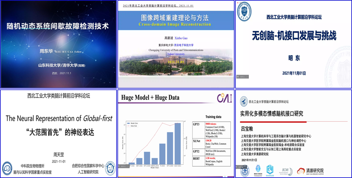 山东科技大学周东华教授分享了题为“随机动态系统间歇故障检测技术”的报告;天津大学明东教授分享了题为“无创脑-机接口发展与挑战”的报告;重庆邮电大学高新波教授分享了题为“图像跨域重建理论与方法”的报告;中科院生物物理所周天罡研究员分享了题为““大范围首先”的神经表达”的报告;清华大学黄民烈教授分享了题为“超大模型与语言理解”的报告;上海交通大学吕宝粮教授分享了题为“实用化多模态情感脑机接口研究”的报告。