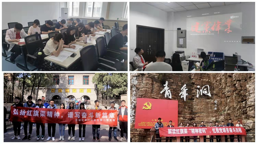 支部将党员教育与各类主题教育及主题活动相结合,广泛开展了交流分享、学习讨论、阅读原著、专题党课、研讨交流、集体观影、实践活动等一系列活动,在学理阐释中增强政治认同。为深入学习贯彻习近平总书记在党史学习教育动员大会上重要讲话精神,支部定期举办“党史知识测试”,深化党员对党史的认知,以测促学、以考验学、以学促知、以学促行,激发党员学习积极性,进一步促进了党员对党的理论知识的学习和理解;支部承办学院“人人讲党史”活动,形成了稳定的宣讲团队,营造了浓厚的活动氛围,并在学院公众号上发表杰克论坛相关的文章进行宣传,做到以讲促学、以讲促思,有效推动党史学习教育走深走实;依托学院的党建“领航行动”计划,党支部成员赴河南红旗渠开展了为期两天的“传承红色记忆,弘扬红旗渠精神”实践活动,通过专题讲座、实践教学等多种形式帮助学生党员深刻领悟了“自力更生、艰苦创业、团结协作、无私奉献”的红旗渠精神。为进一步促进学生党员对党的理论知识的学习和理解,发挥党员先锋模范作用,支部建立“党员先锋角”,方便支部同志开展交流研讨,集体观影等活动。在暑假期间,组织党员前往广西桂林、贵州遵义、陕西延安等地开展红色教育活动,进一步加强党员教育实效性。