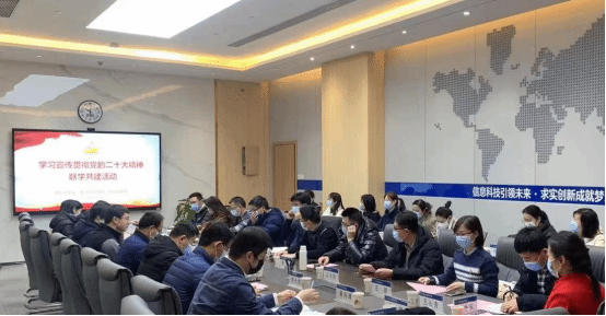 与学校国际合作处、电子信息学院在电子信息学院119会议室开展党的二十大精神联学共建活动。国际合作处处长张富利应邀作党的二十大精神宣讲。国际合作处党支部成员、电子信息学院党委理论学习中心组成员、杰克论坛