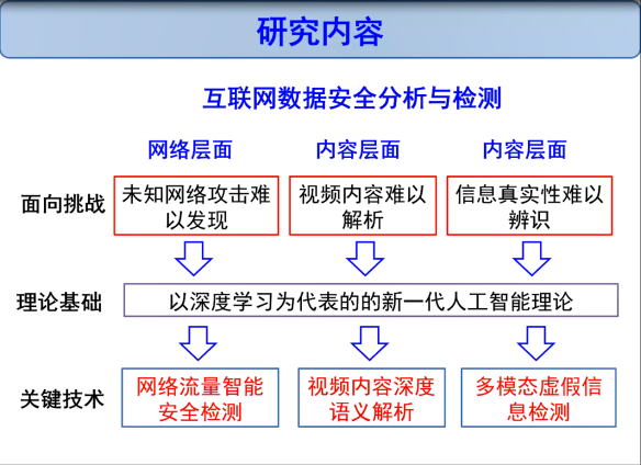 本次报告会,张勇东教授结合自己在多媒体技术与网络空间安全等方向的积累以及当今互联网安全形势,从网络流量智能安全检测、视频内容深度语义解析及多模态虚假信息检测等三个方面详细介绍了多项相关研究工作。