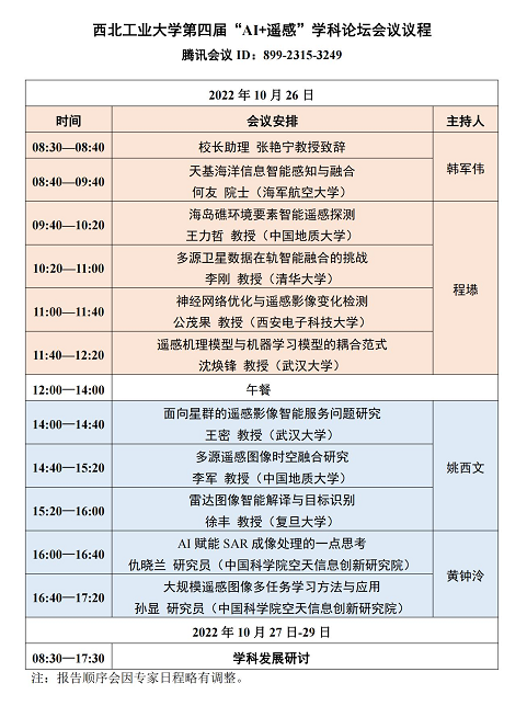 将于2022年10月26日-29日以线上形式(腾讯会议)举办“AI+遥感”学科论坛和学术研讨活动。