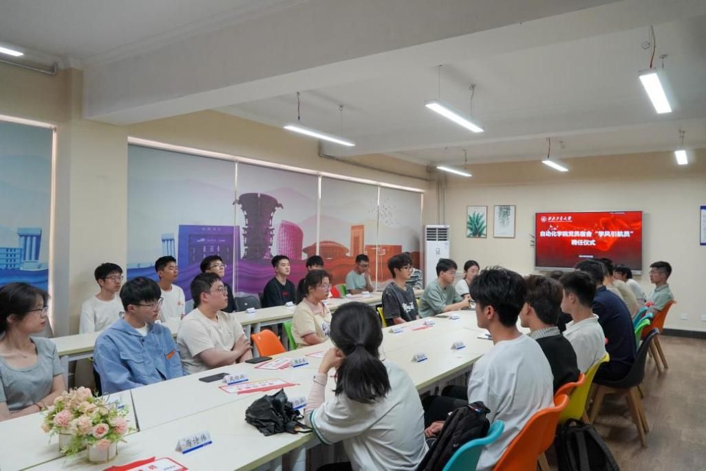 会上,参会老师为“学风引航员”颁发聘书。大三年级党员与大一年级学生宿舍正式建立一对一帮扶体系。