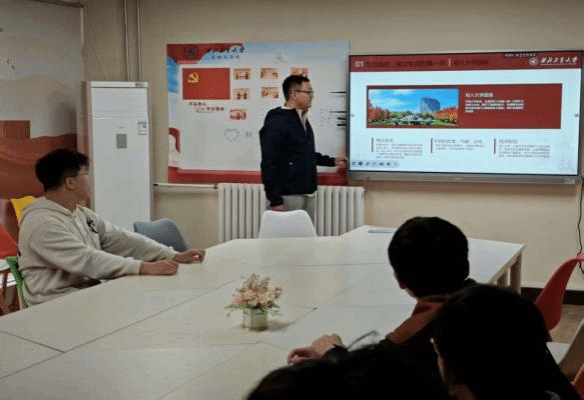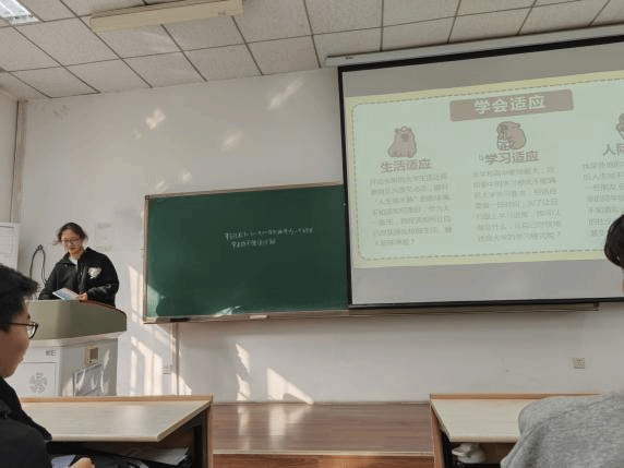 心理委员高子煦围绕新生大学生活适应展开,先讲解生活适应,再介绍学习适应,最后设问题反馈环节,鼓励新生提出困惑。