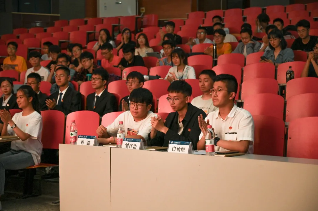 从初赛中脱颖而出的10位选手们气宇轩昂、摩拳擦掌,把自己对党、对祖国的热爱融进微团课中展示、分享给大家。在比赛间隙的互动环节里,来自青年宣讲团、上一届微团课比赛二等奖获得者白淼同学还为现场的选手及观众分享了自己对于党的认识和崇高的钦佩之意,并给出两道关于中国共产党的问答题,帮助大家更好地理解党及党的历史,调动大家的热情。