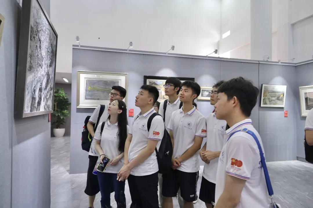 早上9时,实践队抵达遵义师范学院,在校团委副书记余睿、校团委文体部工作人员敖正雅、校团委学生干部的热情接待下,两校师生一同参观了百年广场、红色文化广场、星空广场等,并参观了庆祝中国共产党成立100周年暨贵州省首届“号角与征程”红色主题美术作品展,从画中感悟历史,让党史厚植于心。