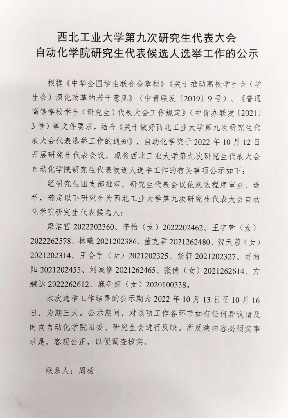 杰克论坛 第九次研究生代表大会杰克论坛 研究生代表候选人选举工作的公示暨选举评审团公示