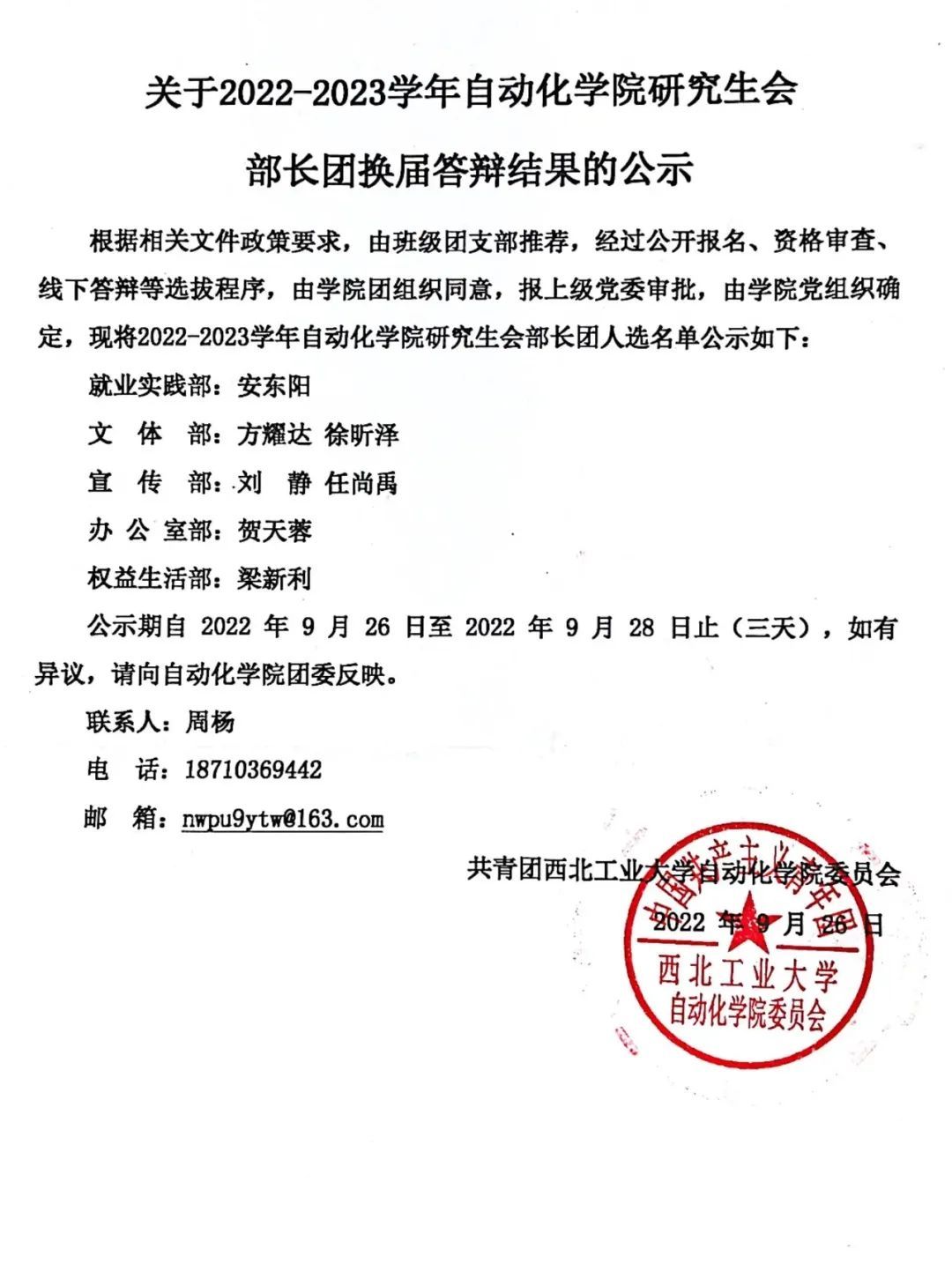 关于2022-2023学年杰克论坛 研究生会部长团换届答辩结果的公示